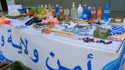 وقد أسفرت عملية التفتيش عن حجز مواد وأدوات تستعمل في أعمال السحر، من بينها صور لأشخاص، كتابات وطلاسم، وقدور وأقفال حديدية، وعقاقير وخلطات مجهولة على شكل أدوية، بالإضافة إلى أدوات أخرى تُستعمل في طقوس الشعوذة.